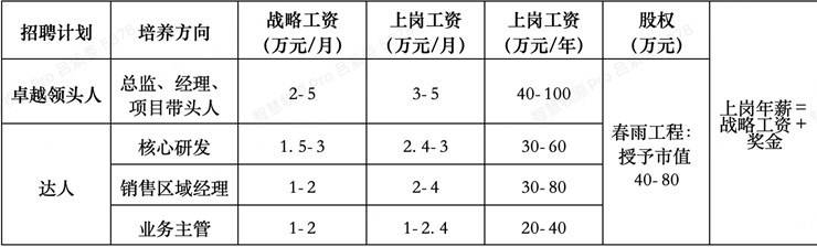 全面薪酬=工资+奖金+股权+福利+晋升+信任·重用+荣誉 招聘计划 培养方向